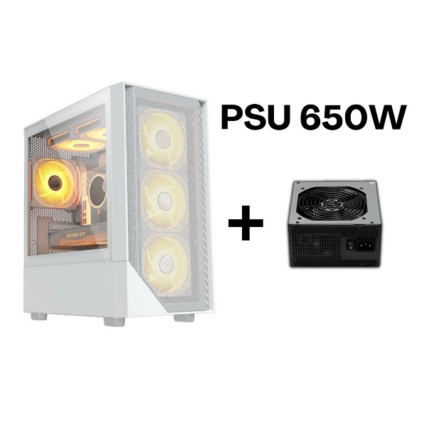 BOITIER GAMING ARES C301 WHITE 4FAN ARES+ALIMENTATION ARES 650W STD ARGB
